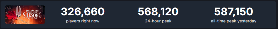 O primeiro Hollow Knight havia atingido cerca de 72 mil jogadores simultâneos em seu pico. O salto para mais de meio milhão mostra o crescimento exponencial da base de fãs e o impacto que o jogo teve desde sua estreia.
